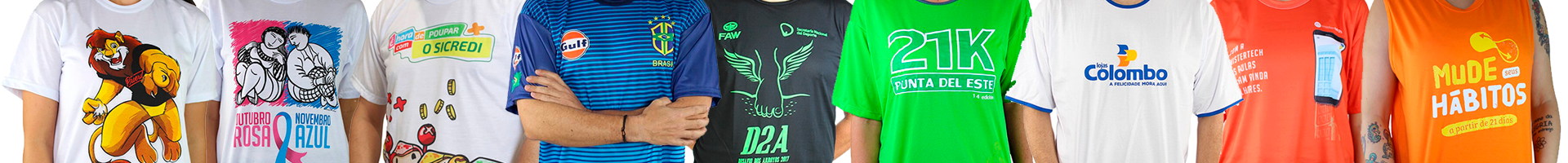 Camisetas em 100% algodão, poliviscose, poliéster e 100% poliamida.